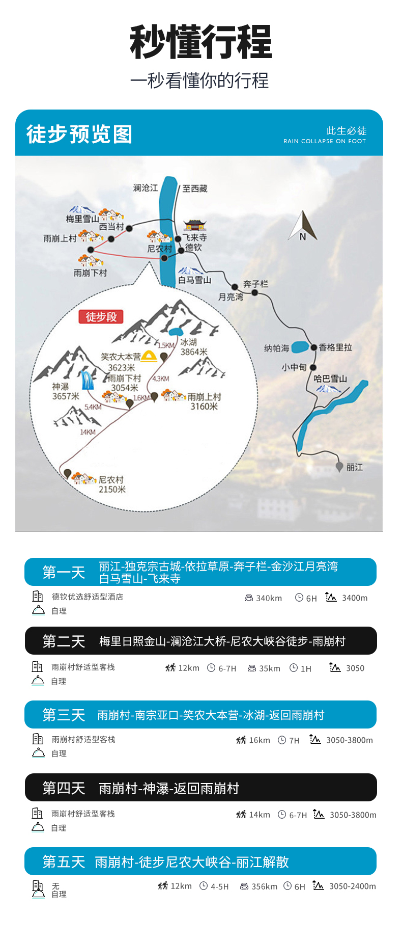 雨崩村→徒步尼農(nóng)大峽谷→麗江解散