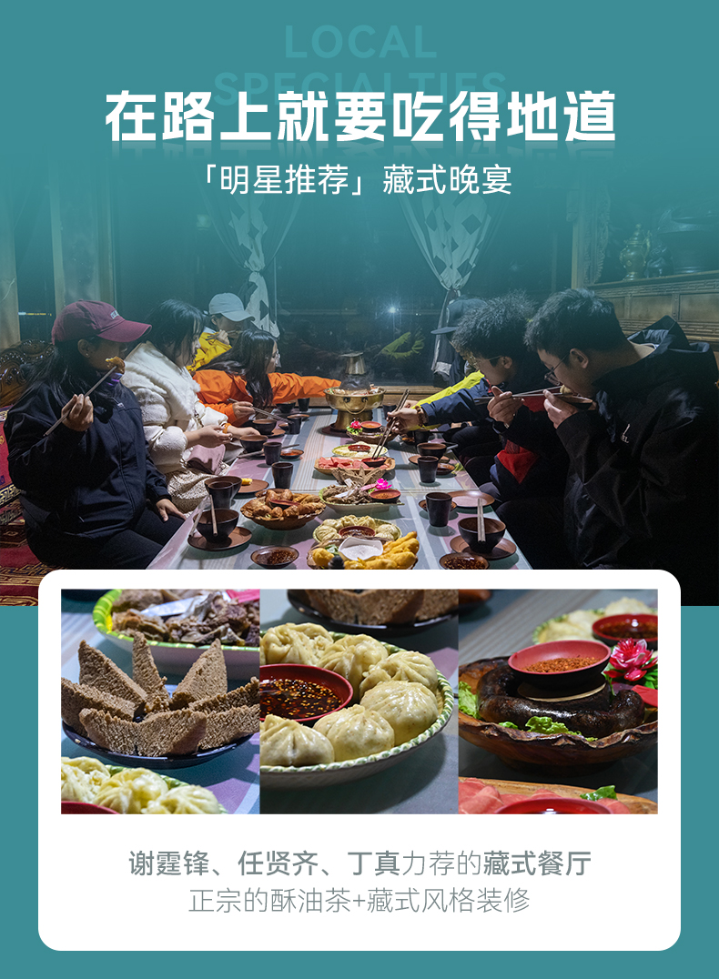2、餐 飲:全程除2頓特色藏餐外,其余餐食敬請自理,由于途中就餐方便,隊員口味不一,建議自理或者AA。