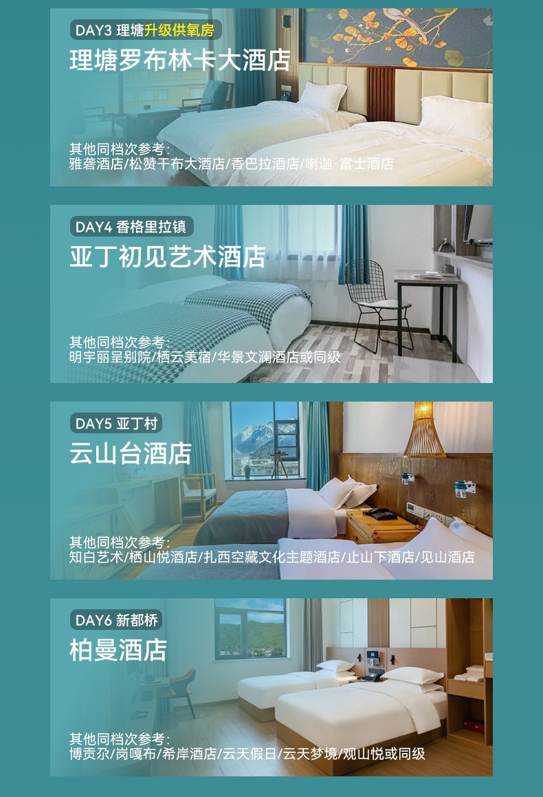 3、門票:四姑娘山雙橋溝門票、塔公草原環(huán)保費、亞丁景區(qū)門票、木雅大寺門票、魚子西環(huán)保費。
