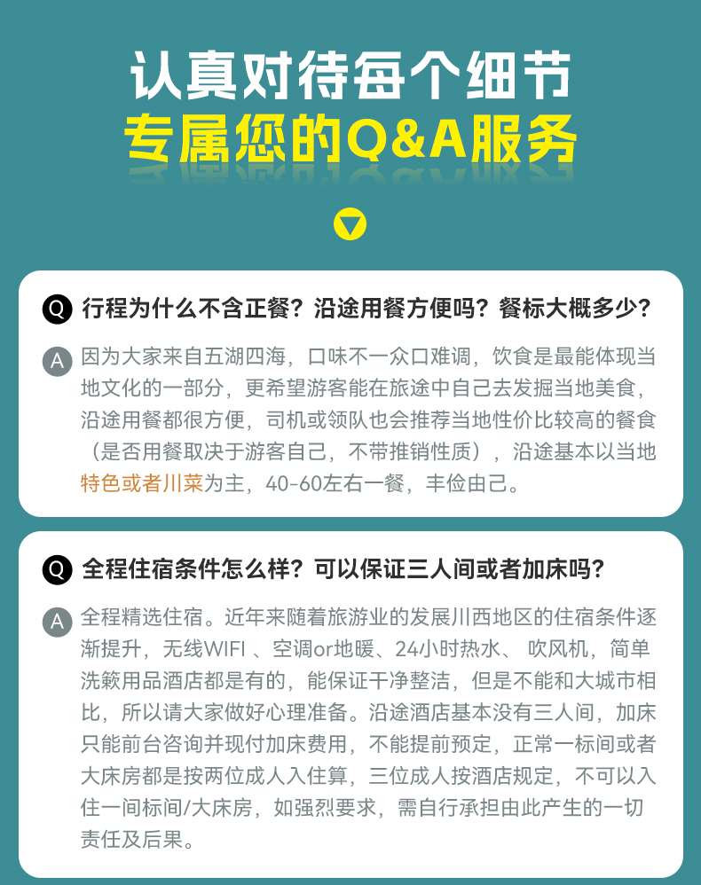 1、正常情況下返回成都18:00左右,由于山區(qū)路況較差,山道狹窄,有可能因為堵車而發(fā)生延誤,建議大家預定第二天返程的航班/車次離開。