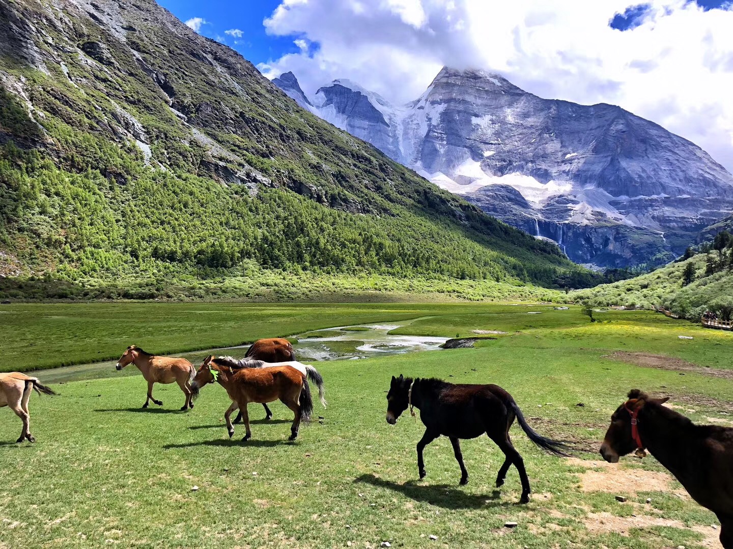 行程概覽:早餐后準時出發(fā),前往魂牽夢繞的香格里拉。乘坐景區(qū)觀光車進入亞丁景區(qū)從亞丁村徒步大約3小時可到【洛絨牛場】(也可選擇坐電瓶車,需自理)。一般對于大部分客人來說洛絨牛場就是亞丁景區(qū)的中心地區(qū),這里可以近距離觀賞【央邁勇】(文殊菩薩)和【夏洛多吉】(金剛手菩薩)兩座神山。有體力的隊員可以挑戰(zhàn)一下牛奶海和五色海,繼續(xù)往上,徒步或騎馬(騎馬費用需自理)大約3小時到達【牛奶海】和【五色?!俊N迳:0屋^高,有4700多米的海拔,一路上都在高海拔地區(qū)行走,一定請大家量力而行,風景可以再看,安全永遠第一),下午4點左右返回亞丁村酒店住宿。