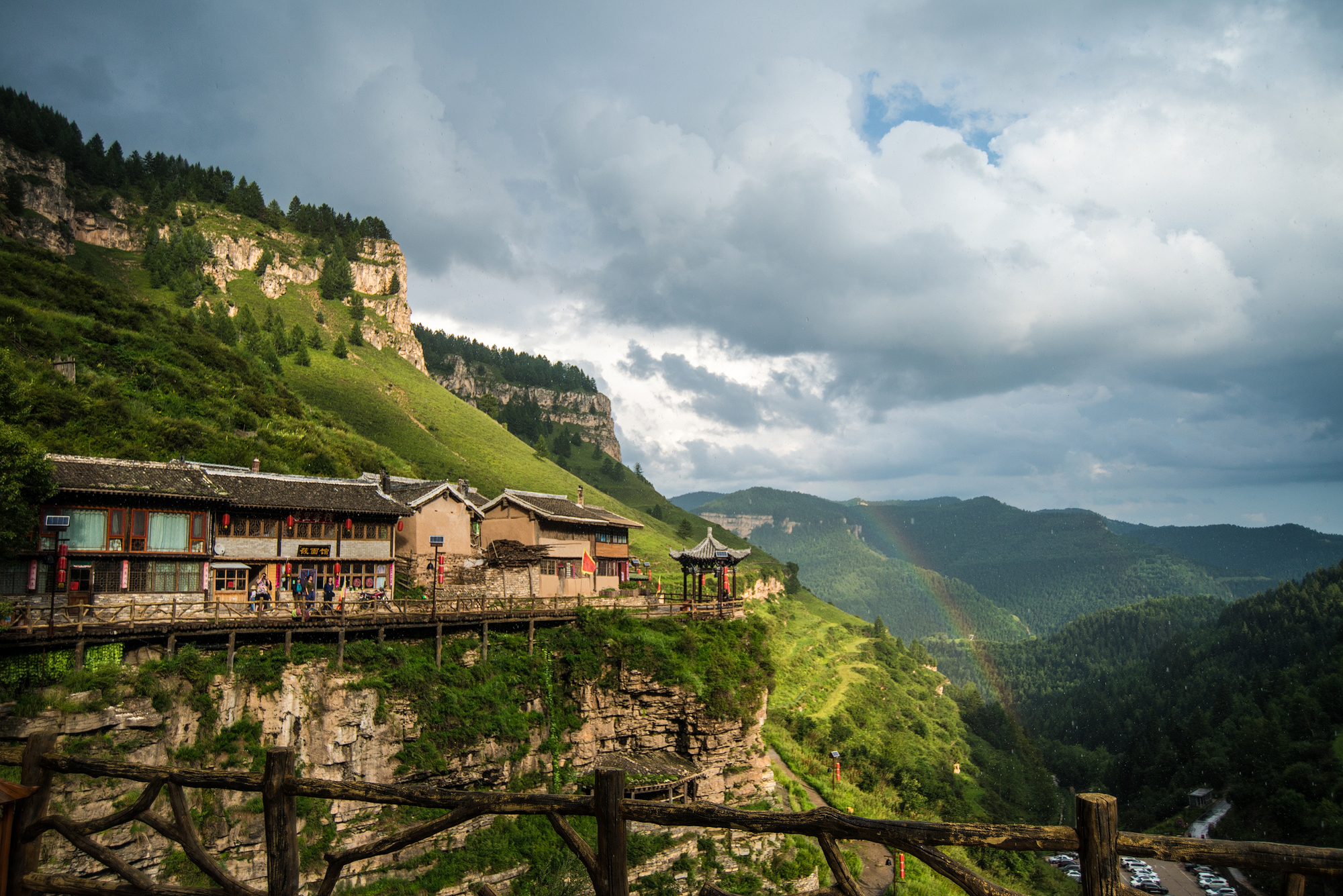 稍后驅(qū)車來到山西晉北大山深處的【懸空村】,它名副其實(shí),村落建在2300米的懸崖之中,宛如空中樓閣。進(jìn)村只有唯一一條陡峭山路,村子里的主路都是最原始的木頭棧道,走上去有咯吱咯吱的聲音。人仿佛身處半空,底下就是深不見底的懸崖。雖然驚險,風(fēng)景卻十分唯美,湛藍(lán)的天空和山壁遙相呼應(yīng),白云飄過,人在畫中游。