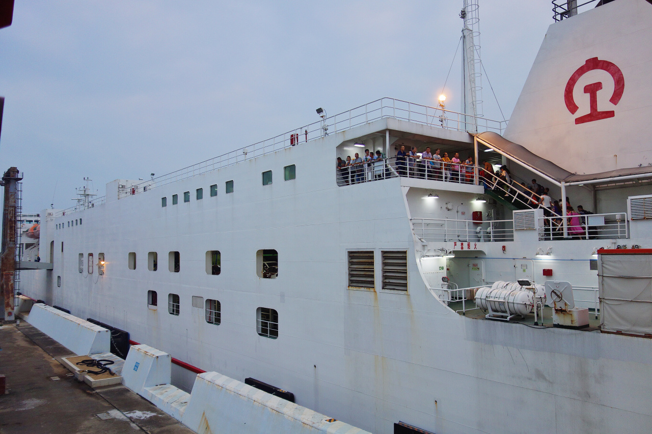 早上07:00開始指定乘車點上車,車上K歌等各種互動游戲,全程沿海高速,午餐在高速服務(wù)區(qū)解決,約6個半小時到達湛江海安港碼頭,然后坐船過渡到海南島??谑小?/p> 大巴車、火車開到巨輪上見過有木有